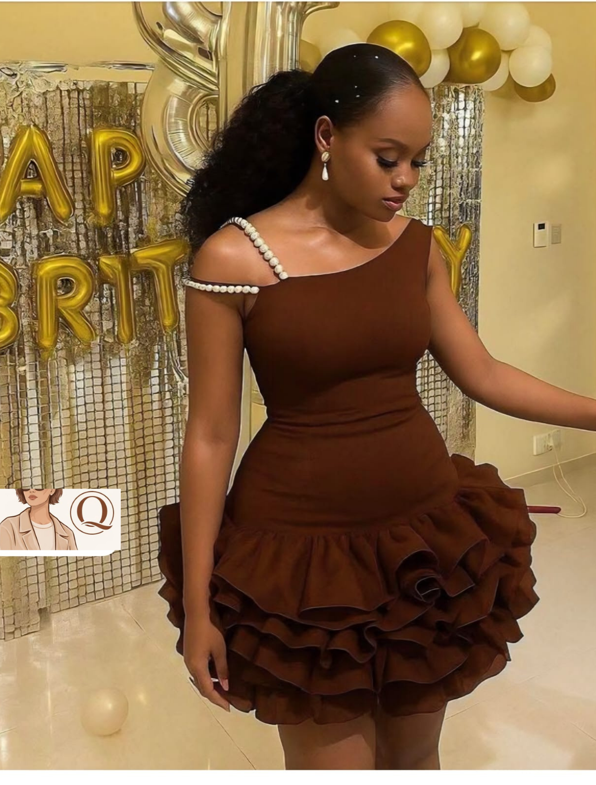 The one-shoulder design is finished with delicate pearl strap detailing, adding a refined accent that elevates the entire look. Perfect for birthdays, special celebrations, dinner dates, or any moment you want to feel confident and beautifully dressed.