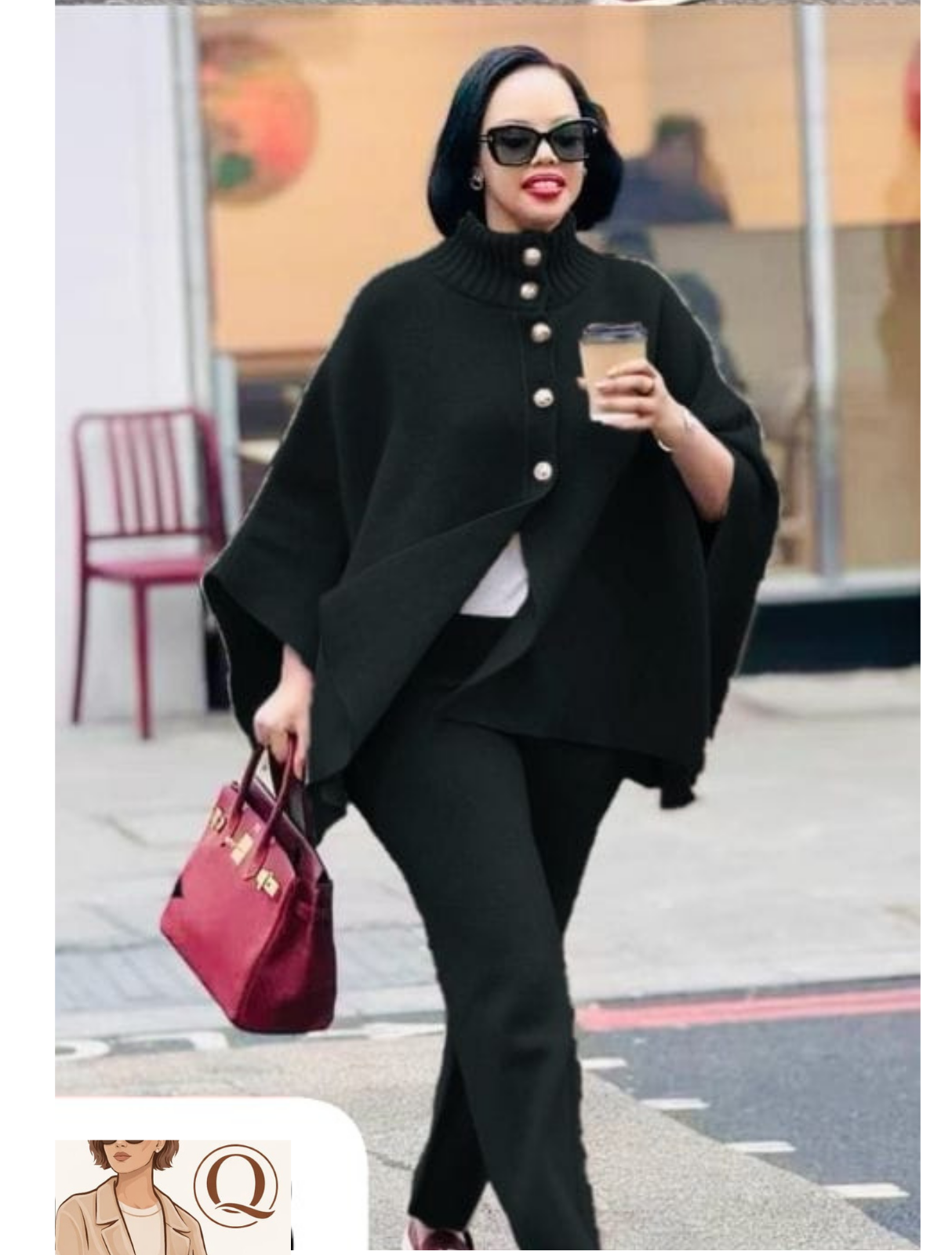 • Matching poncho-style knit top and fitted pants ✨